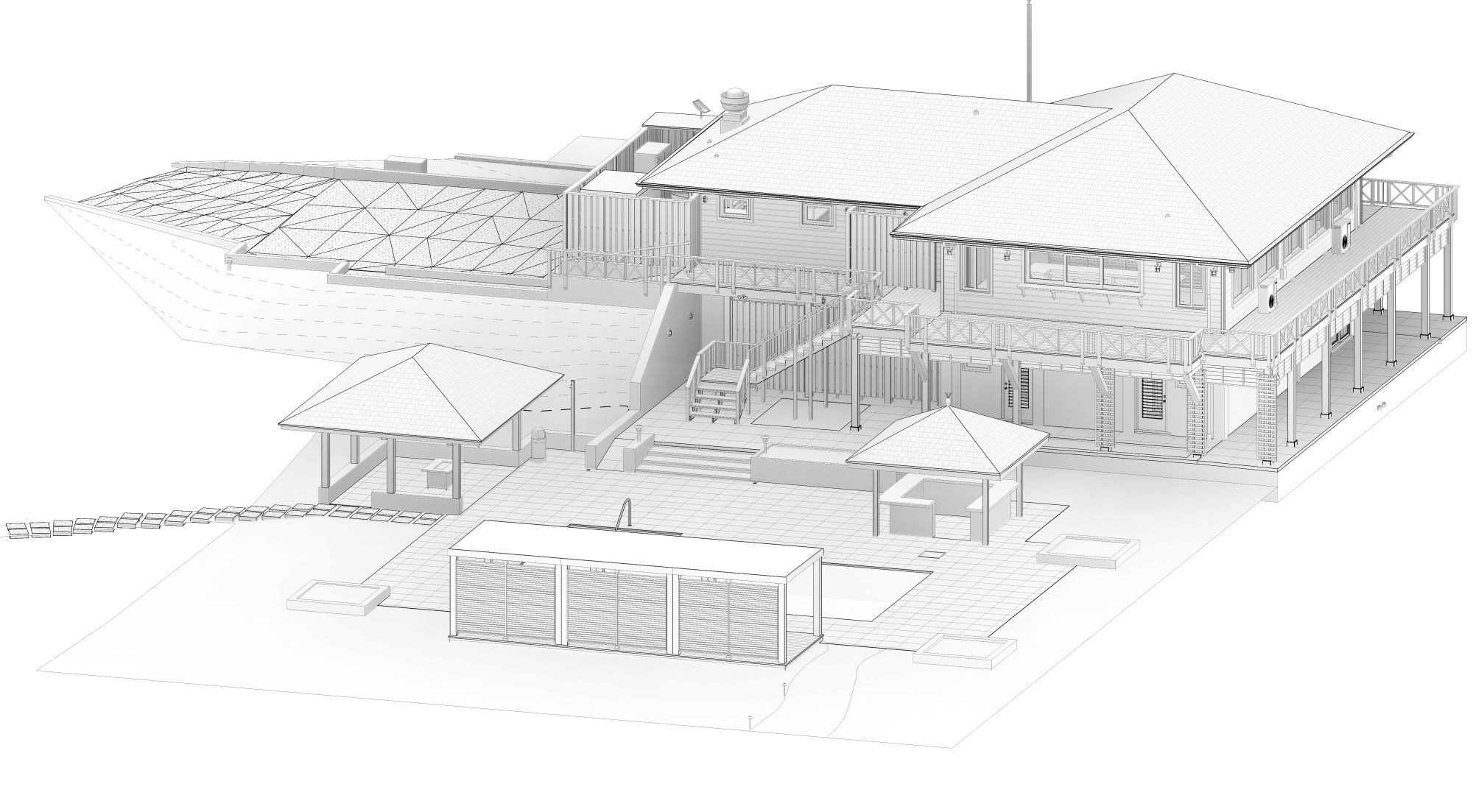 A multi-discipline BIM project for The Club At Windermere, Savannah Sound, The Bahamas. The scope included modeling all architectural, structural, MEP, and site elements.